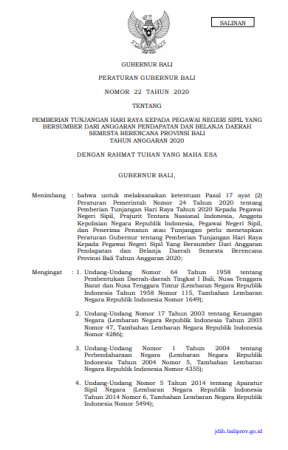 Peraturan Gubernur Bali Nomor 22 Tahun 2020 tentang